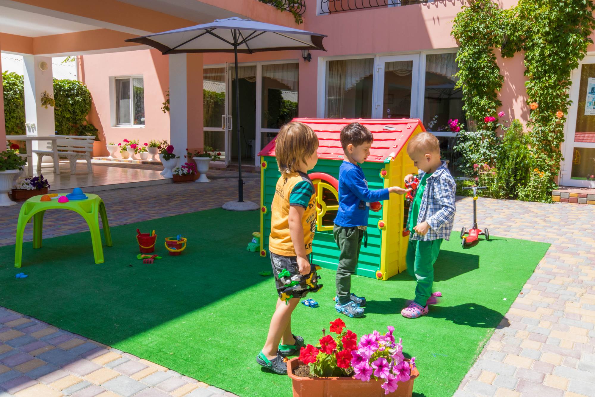 В вашем распоряжении полностью столовая, терасса с мебелью и детской площадкой. В каждом номере есть санузел (туалет и душ), телевизор, холодильник. Сервис отвечает всем необходимым европейским стандартам, включает обслуживание номеров, регулярную смену постельного белья, полотенец.